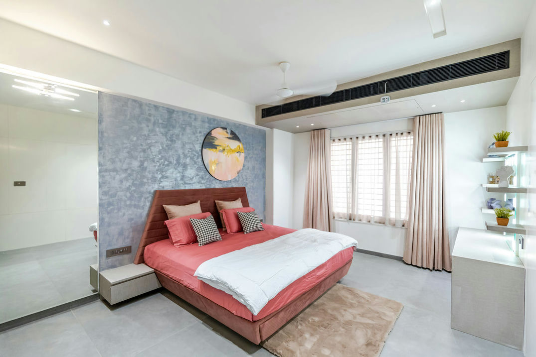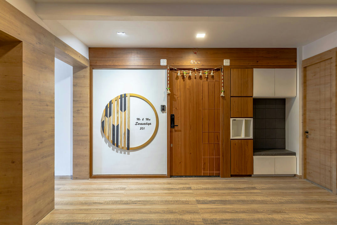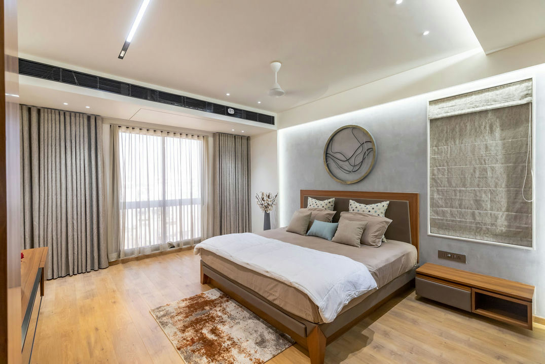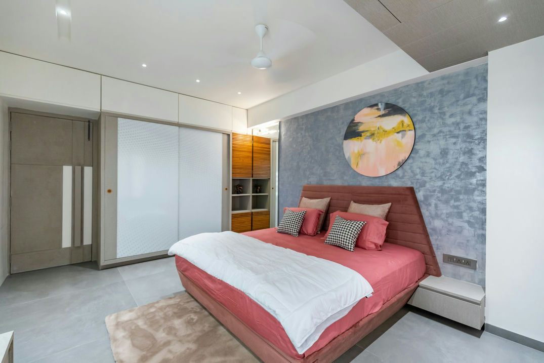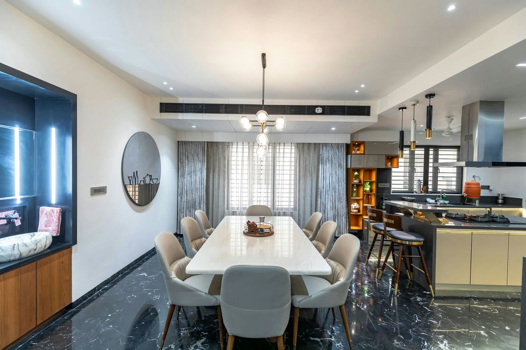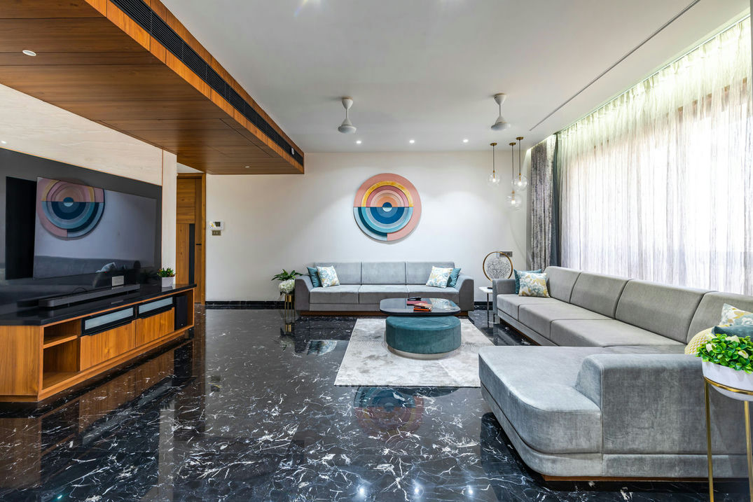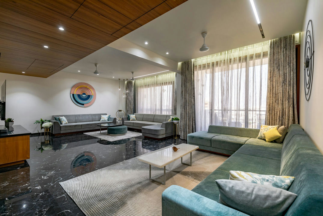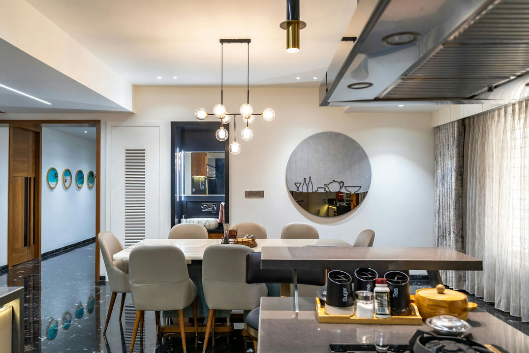 In the realm of interior design, this flat stands as a masterpiece of aesthetics and craftsmanship. From the very entrance, it captivates with an evil eye wall and a Buddha idol, setting the tone for a regal experience. The living room, embellished with soothing colours, radiates an air of quietness, providing an inviting space for relaxation and social gatherings.