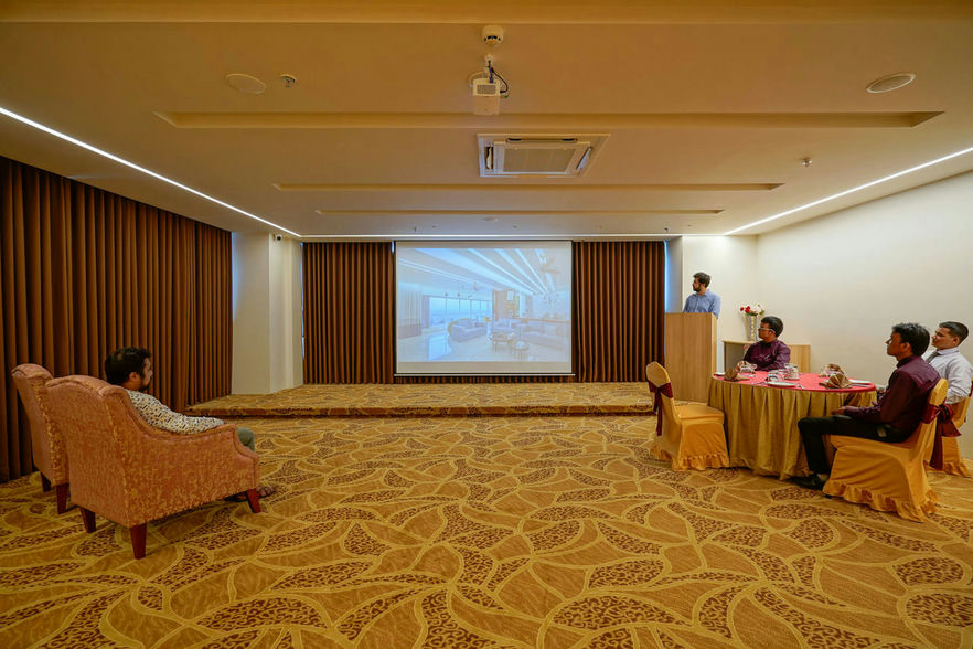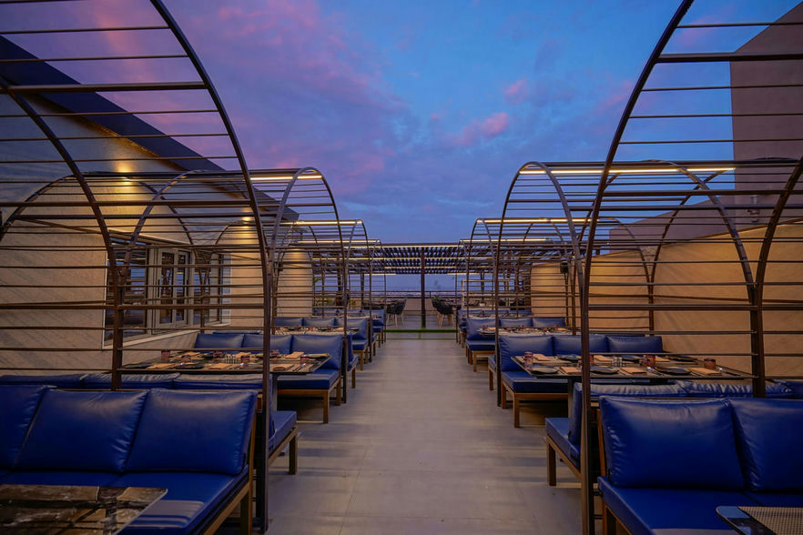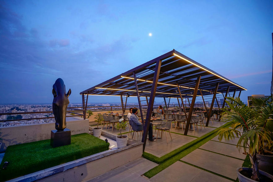 Thirteenth floor, terrace was the focus of attention, which has roof top restaurant with fabricated tensile structures, an inviting and enjoyable space designed to beautify the terrace. One can see the entire view of Rajkot city and can likewise partake in the entrancing illuminated perspective on the city around evening time.
