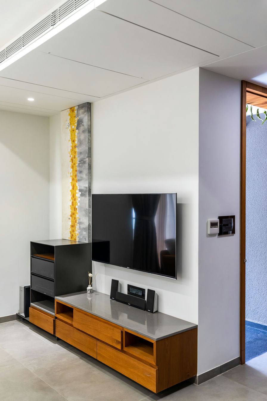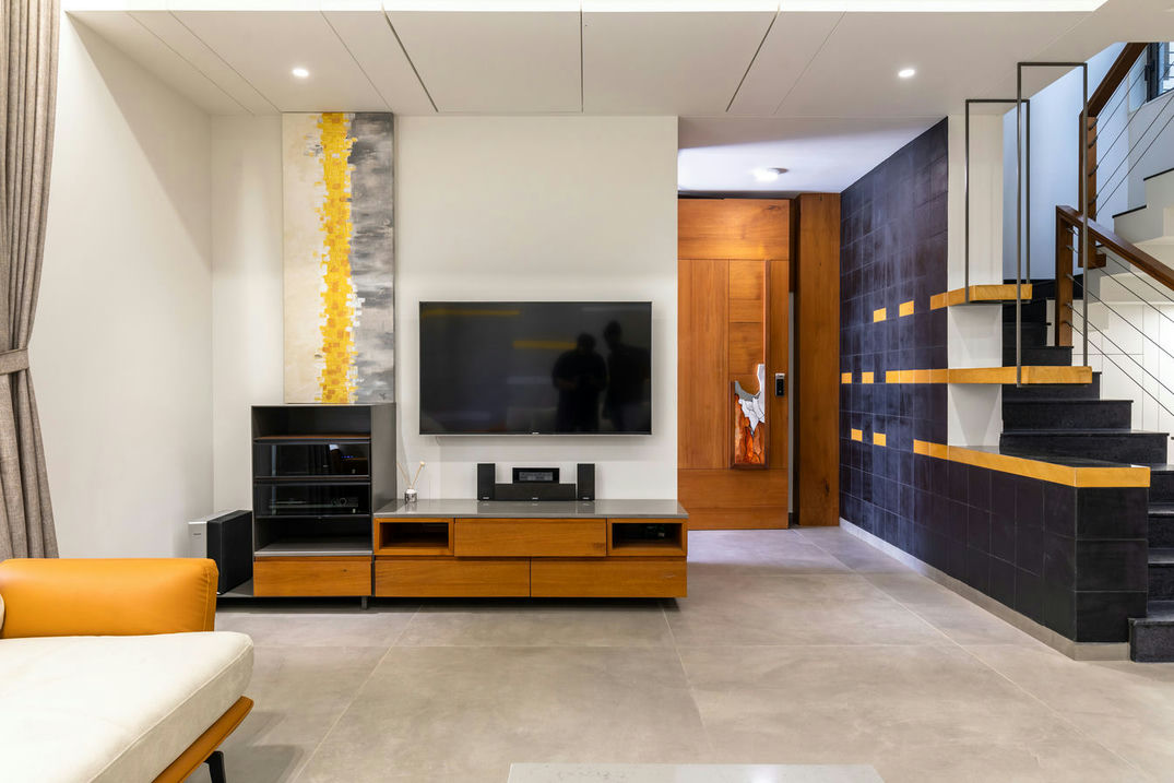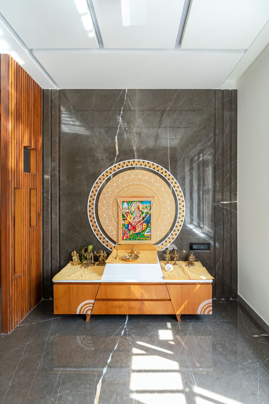 Vinodbhai's home send forth a quality of refinement, starting with an elegantly organized living room leading to a simple yet sophisticated kitchen. The focal point of the house is the puja room, resounding spiritual energies and offering a serene atmosphere.
