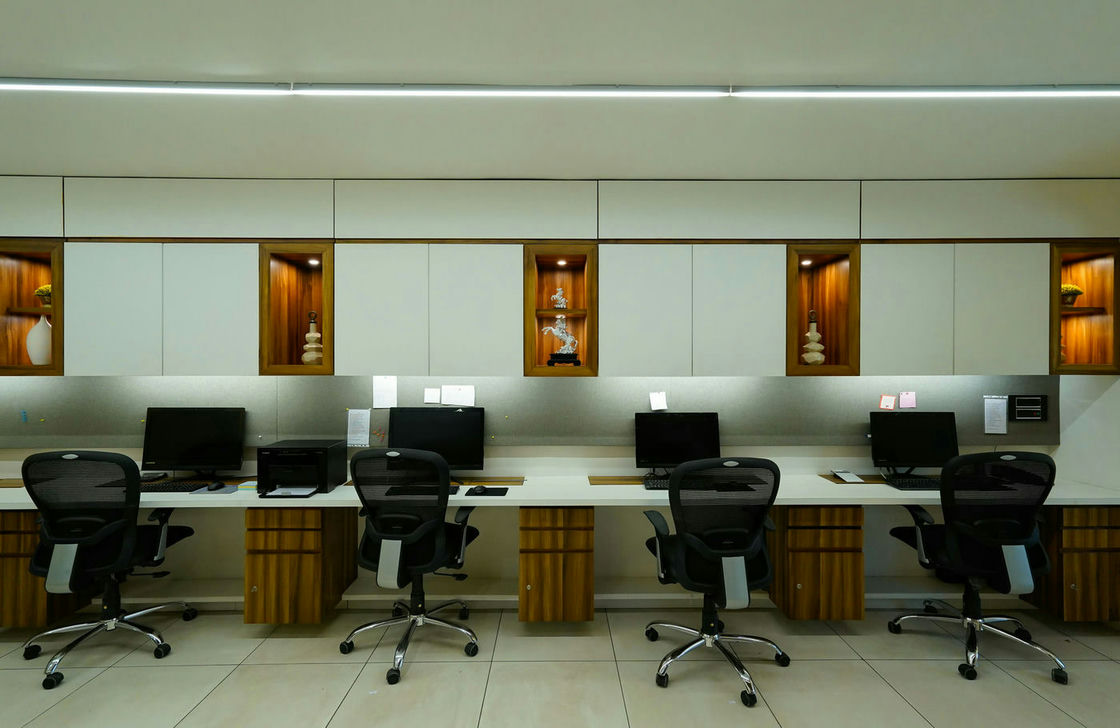 The Asian Flexy Pack office has innovative design principles seamlessly merging with efficient space utilisation. The guiding motto behind its creation was to provide a functional and user-friendly workspace. One of its most remarkable features is the inventive use of ceiling tiles in the main chamber, a task that posed both excitement and technical complexity. These tiles, enhancing the top of the office, serve as an aesthetic marvel as well as exemplify the fusion of form and function.